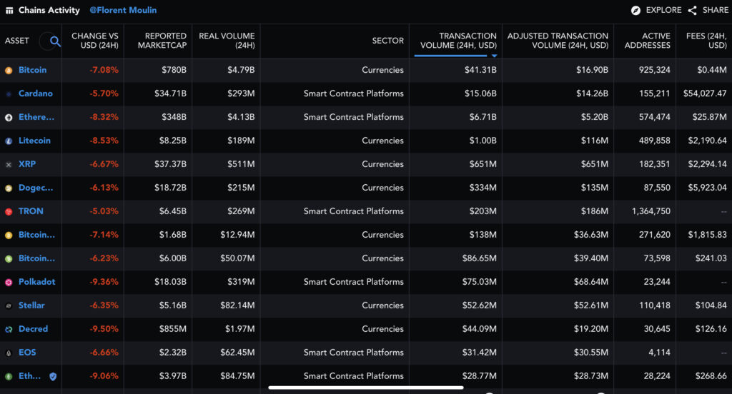 Cardano has been in second place for Transaction volume for about a week now (it actually surpassed Bitcoin at one point). Of note: